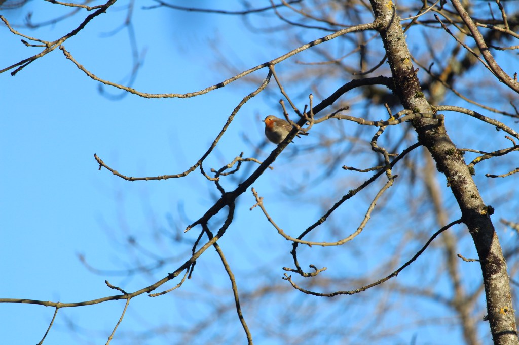 Aux toutes premières lueurs de l’aube un, puis plusieurs rouge-gorges baignent de leur chant le bois des Beys. Un peu plus tard des merles s’invitent à ce concert matinal. Pendant ce temps une hulotte, certainement fatiguée de ses chasses nocturnes, s’en va se coucher.