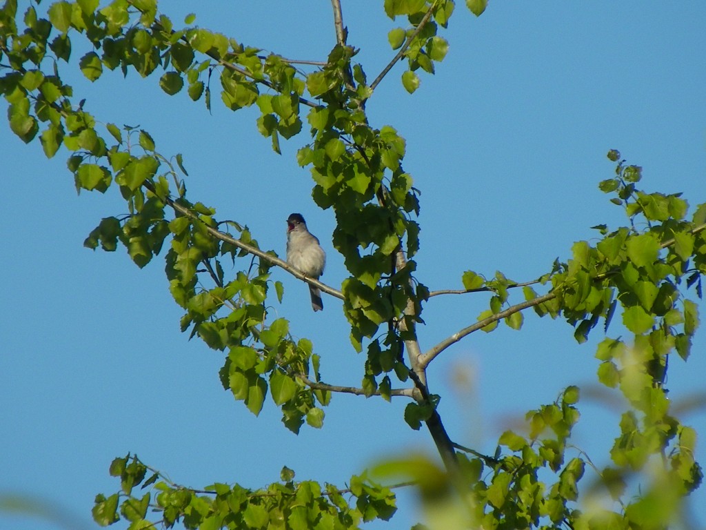 Au lever du jour, je partis avec ma parabole faire un tour dans les prés aux alentours de la maison. En chemin, je rencontrais une fauvette à tête noire (Sylvia atricapilla). Je la suivis et enregistrais son chant assez véloce et inventif. Soudain, alors qu’elle était dans un bosquet au milieu de pré, son chant se fit plus véhément, elle enchaînait les phrases sans jamais vouloir s’arrêter. Je compris ce flot de notes énervées, en voyant qu’une autre fauvette tentait de s’approcher du gîte de la propriétaire.
