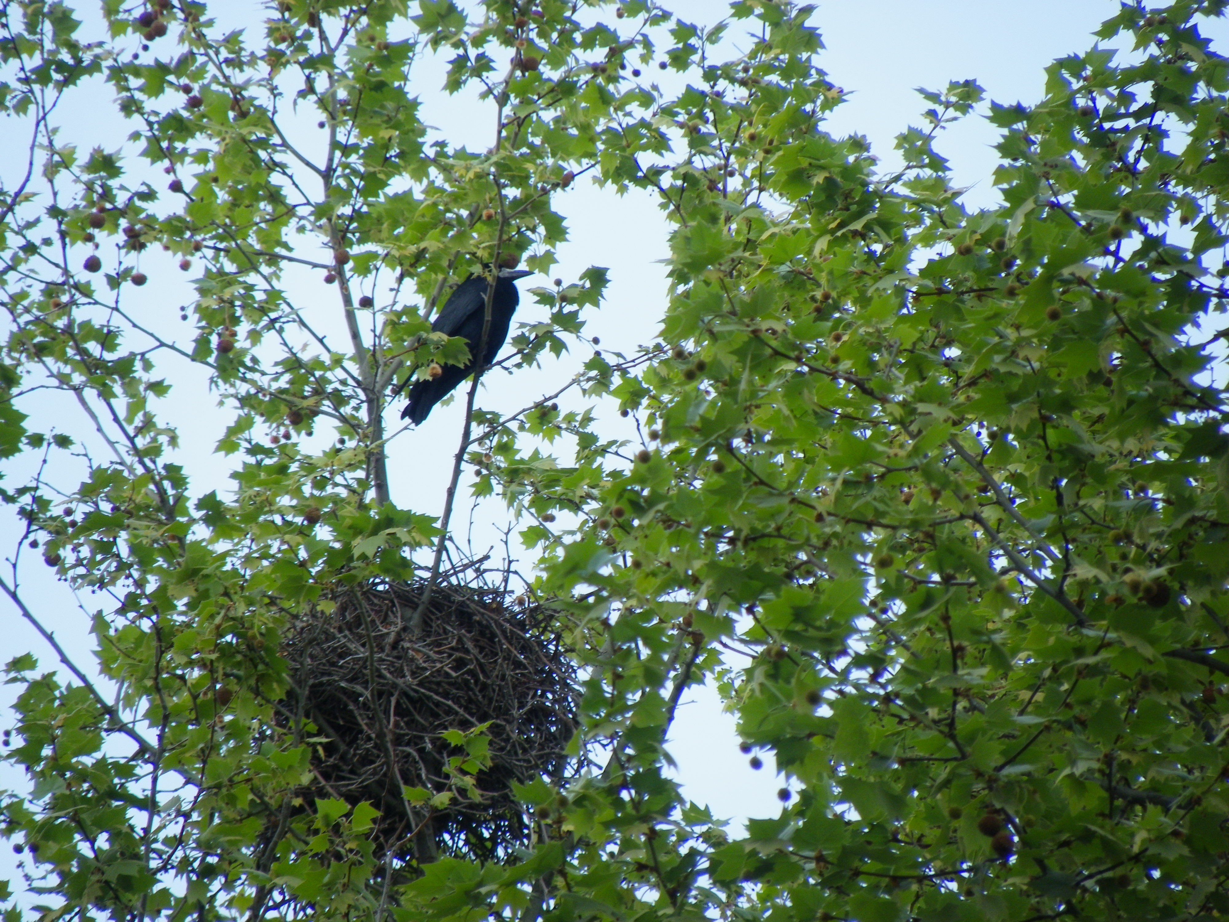 Les ramiers, ainsi que les freux occupent les platanes de la rue.